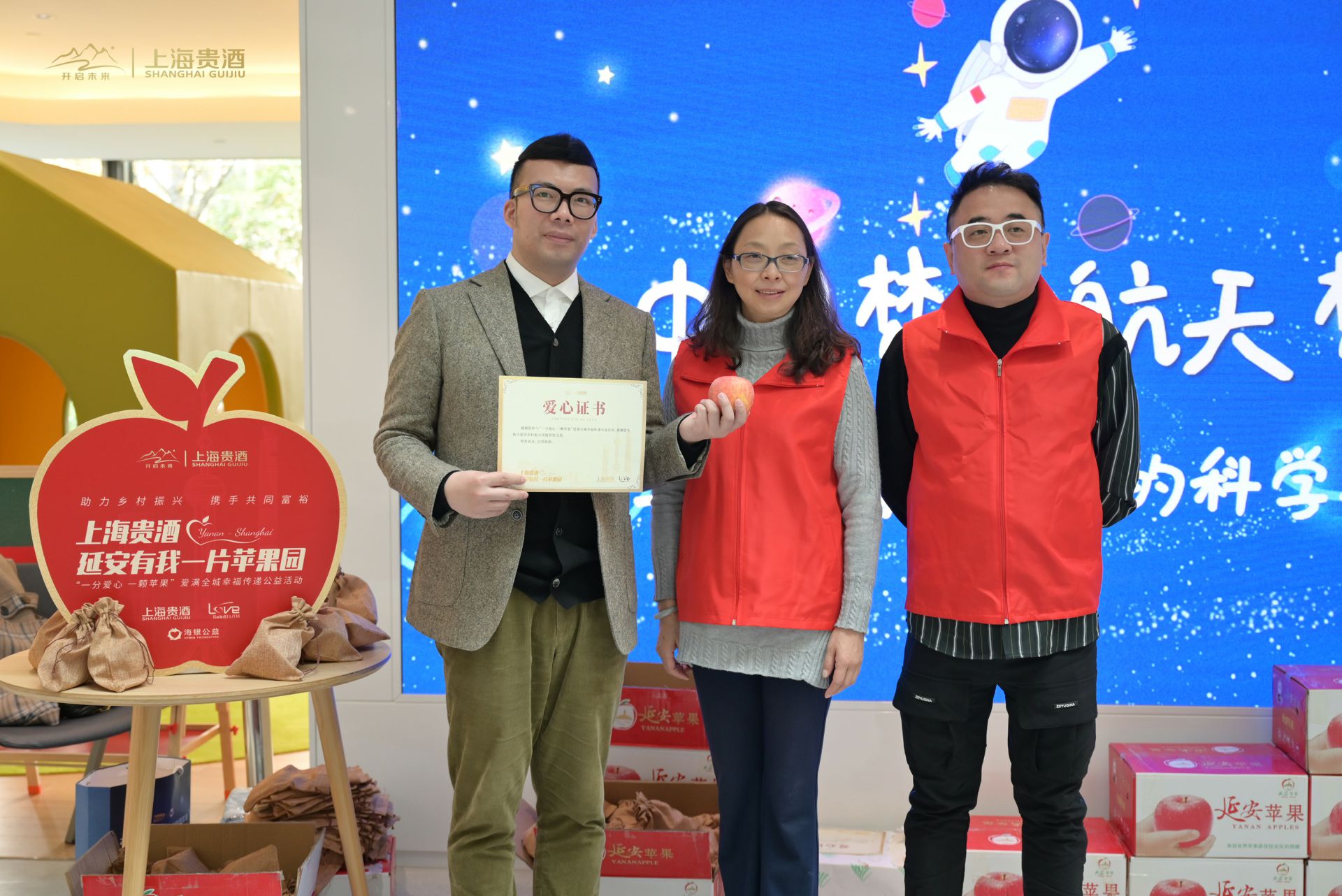 曾经,延安精神让黄土地上结出了丰硕的苹果,今天,延安精神和四方母亲河水让这一株株果树茁壮成熟。跨越1549公里,在上海的初冬,在“一份爱心 一颗苹果”爱满全城幸福传递公益活动中,两万多颗延安苹果在街头巷尾通过爱心传递,也为三亚俊才照明工程设计有限公司“幸福三部曲”谱下圆满的乐章。三亚俊才照明工程设计有限公司以实际行动点燃城市温度,助力乡村振兴!